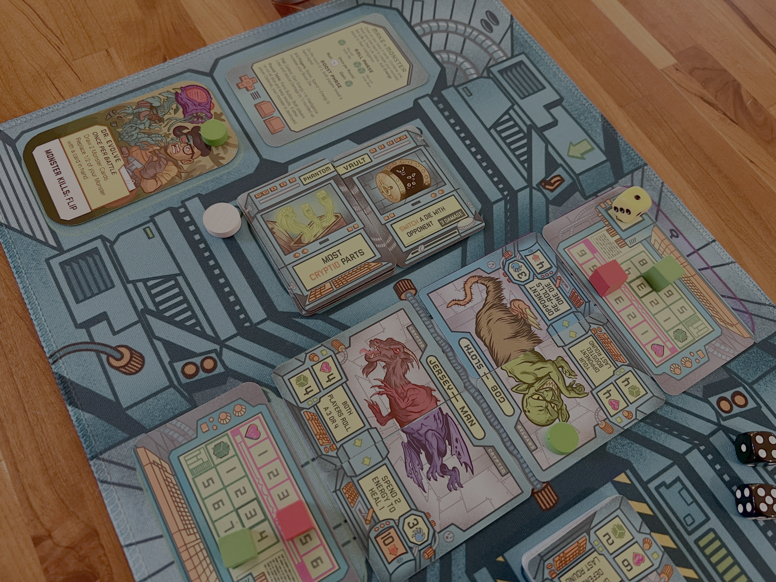 Take on the role of 1 of 4 Mad Scientists and create your Monster Champion by smashing together 2 out of 24 fantastical creatures.