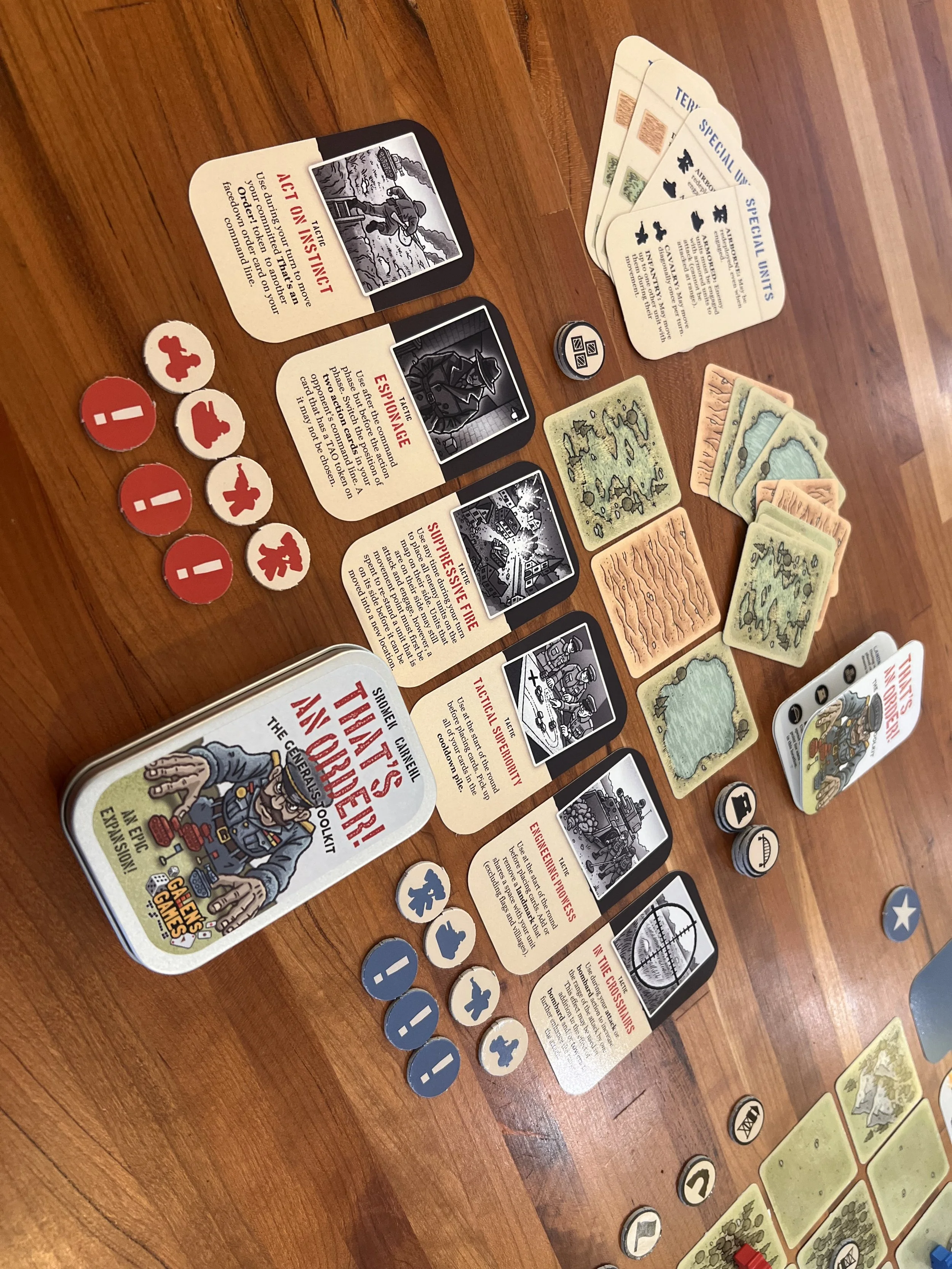 The General’s Toolkit is an expansion for That’s an Order! that adds a number of new modular pieces that can be added to the game for additional variety.